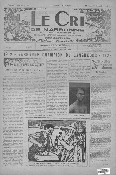 Dans le cadre de la campagne de numérisation de la presse ancienne régionale instituée par la Région, la presse et les revues littéraires de l'Espace Média ont été entièrement numérisées : le Cri de Narbonne, la revue Septimanie…