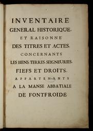 Inventaire général historique et raisonné des titres et actes concernant les biens, terres, seigneuries, fiefs et droits appartenant à la manse abbatiale de Fontfroide.