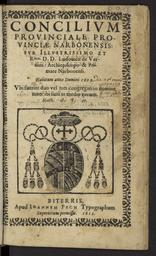Concilium provinciale provinciae Narbonensis Illustrissimo et Rmo. D.D. Ludovico de Veruins, archiepiscopo et primate Narbonensi.
