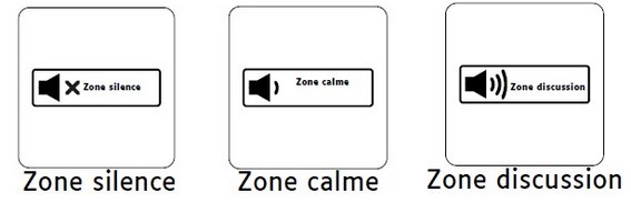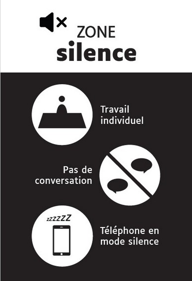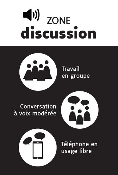 Enfin, des stickers permettent d'identifier les usages associés à chaque zone (calme, discussion, silencieuse).