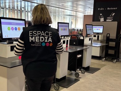 Depuis sa réouverture, l’Espace Média a souhaité enrichir son accueil inclusif en mettant à disposition deux Flâneuses®, un mobilier mobile ingénieux et original en libre-accès. Créée par une société toulousaine, la Flâneuse est un siège-support ergonomique pensé pour faciliter la circulation et le confort de tous les visiteurs.